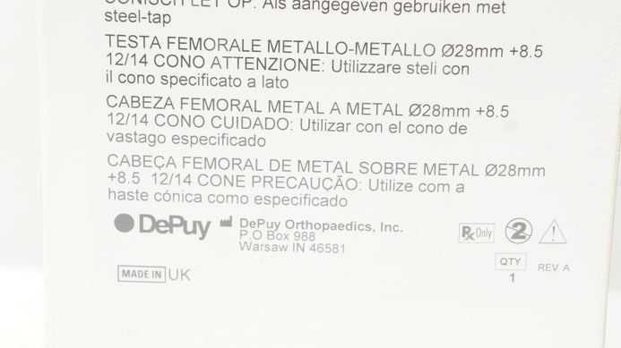 DePuy 1365-13-500 Articul/EZE Metal Femoral Head 28mm +8.5 12/14 Taper (x)