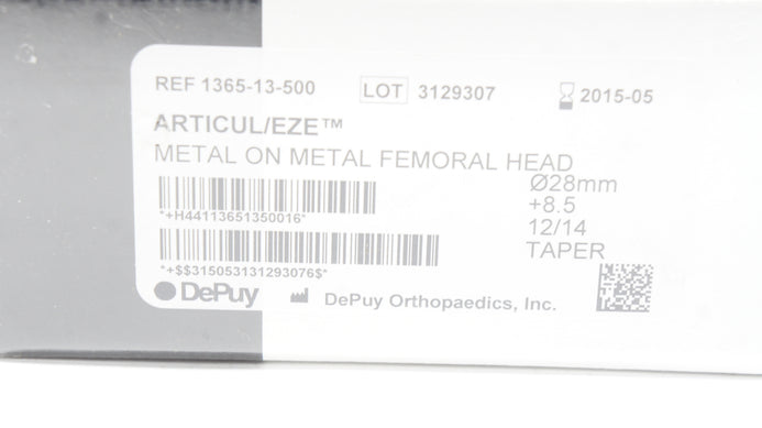 - DePuy 1365-13-500 Articul/EZE Metal Femoral Head 28mm +8.5 12/14 Taper (x)