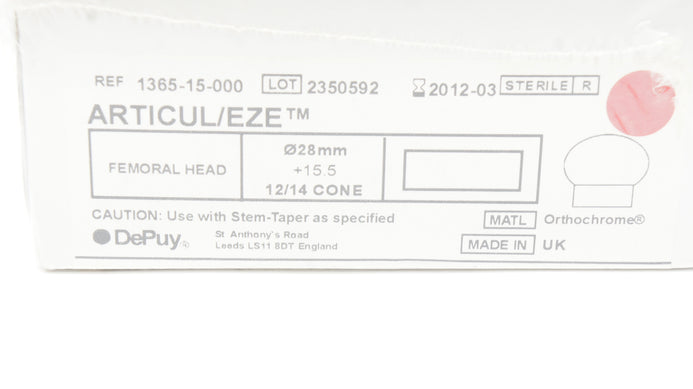 - DePuy 1365-15-000 Articul/EZE FEmoral Head 28mm,+15.5, 12/14 Cone (x)