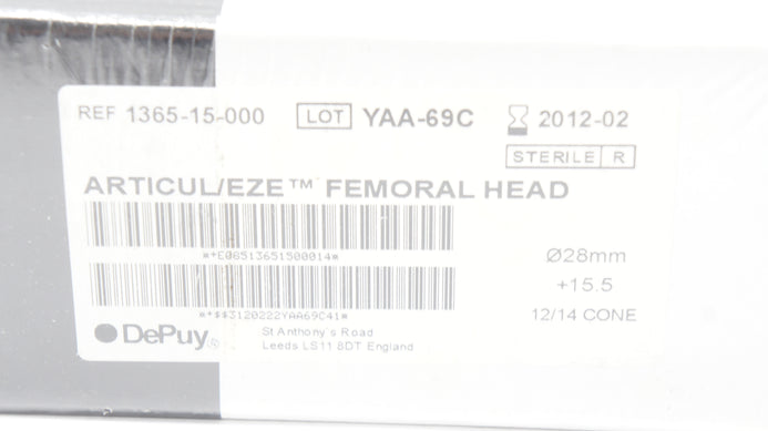 - DePuy 1365-15-000 Articul/EZE FEmoral Head 28mm,+15.5, 12/14 Cone (x)
