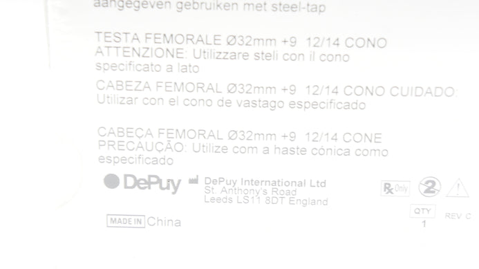 - DePuy 1365-23-000 Articul/EZE Femoral Head 32mm, +9, 12/14 Taper (x)