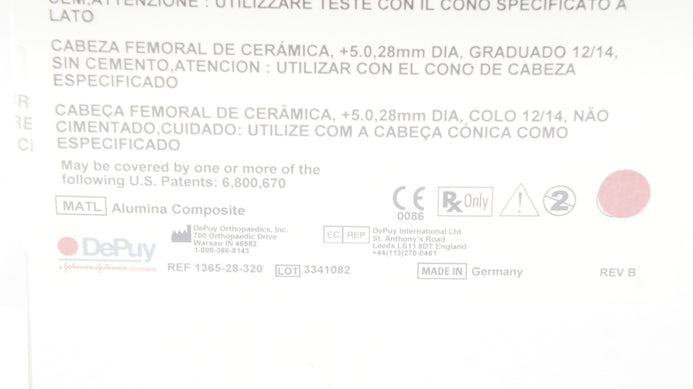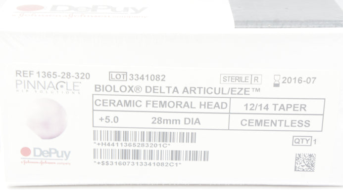 - DePuy 1365-28-320 Pinnacle Biolox Ceramical Femoral Head 28mm +5.0 12/14Taper(x)