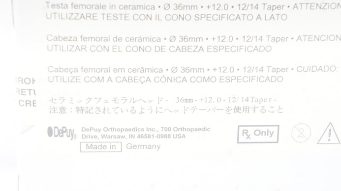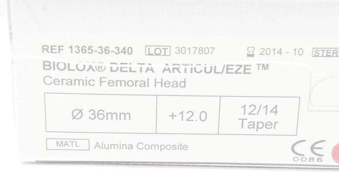 - DePuy 1365-36-340 Biolox Delta Ceramic Femoral Head 36mm x 12.0 x 12/14 Taper(x)