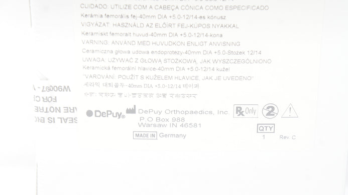 - DePuy 1365-40-720 Biolox Ceramic Femoral Head 40mm +5.0 12/14 Taper (x)