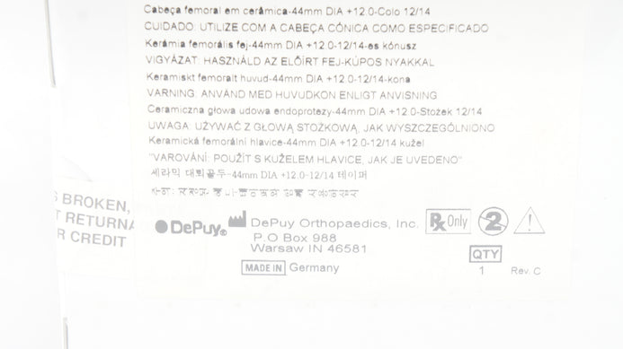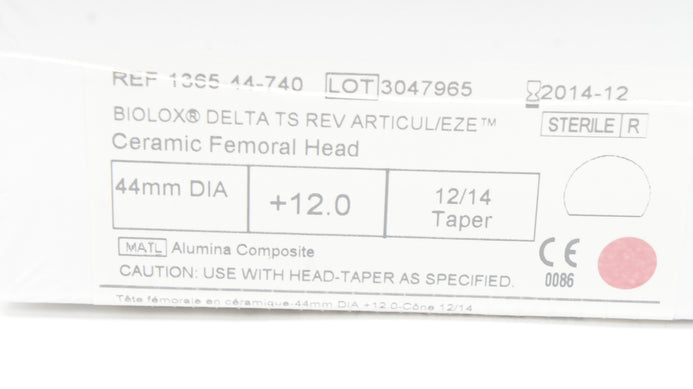 - DePuy 1365-44-740 Biolox Ceramic Femoral Head 44mm +12.0 12/14Taper (x)
