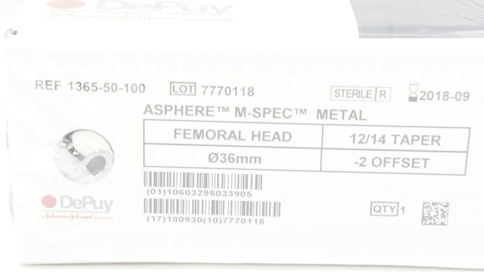 - DePuy 1365-50-100 Aspire M-Spec Metal Femoral Head 36mm,12/14 Taper,-2 Offset(x)