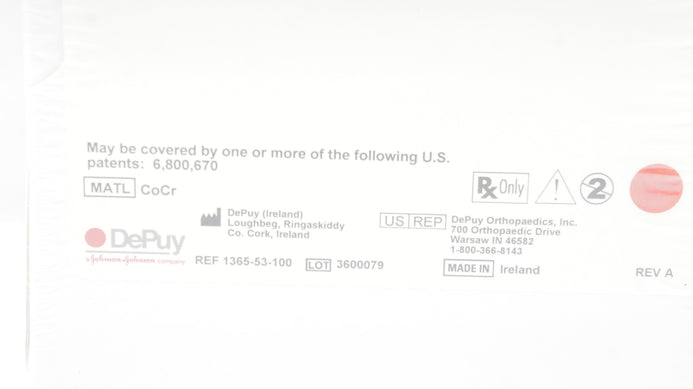 DePuy 1365-53-100 aSphere M-Spec Metal on Metal Femoral Head 36mm,+8.5x 12/14(x)