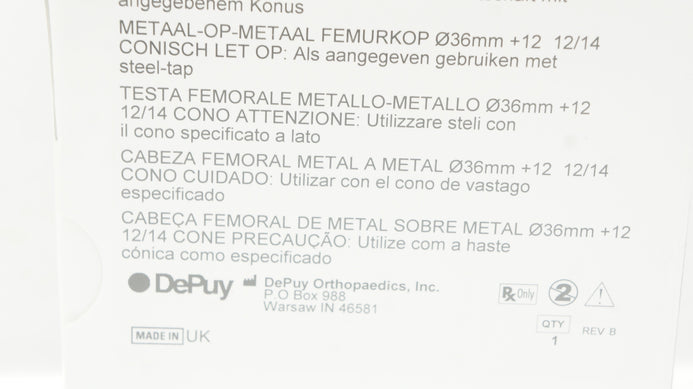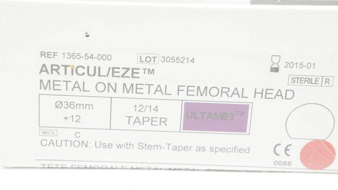 - DePuy 1365-54-000 Articul/EZE Metal Femoral Head 36mm +12 12/14 Taper (x)