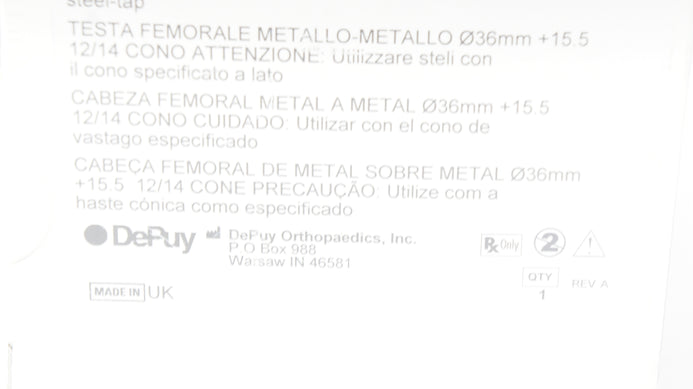 - DePuy 1365-55-000 Articul/EZE Metal Femoral Head 36mm +15.5 12/14Taper (x)