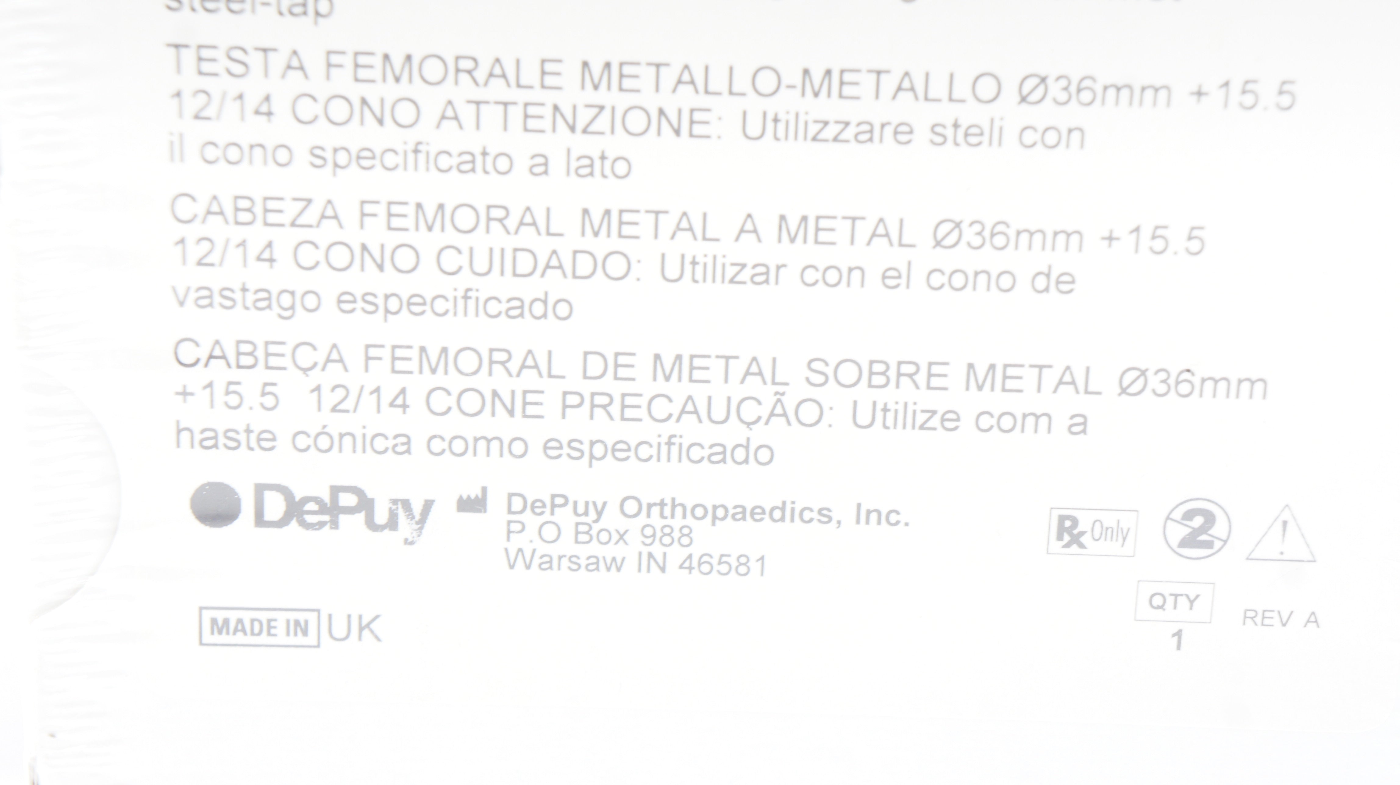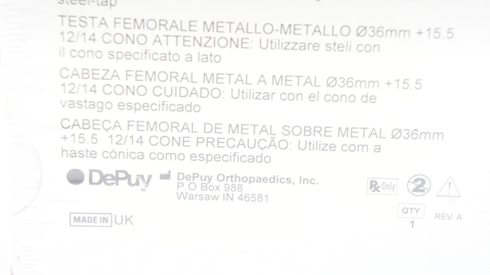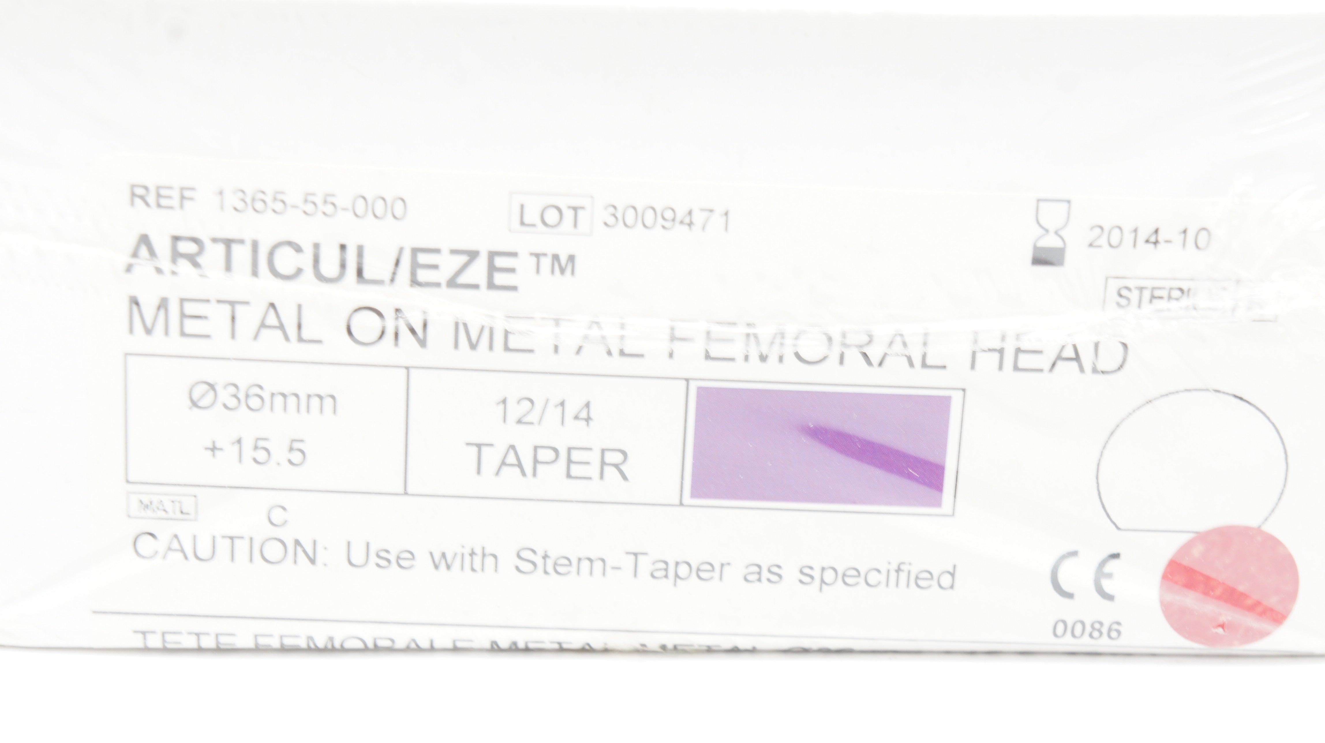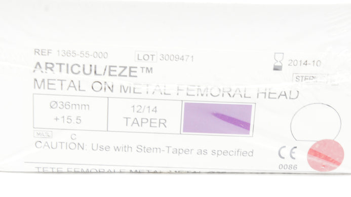 - DePuy 1365-55-000 Articul/EZE Metal Femoral Head 36mm +15.5 12/14Taper (x)