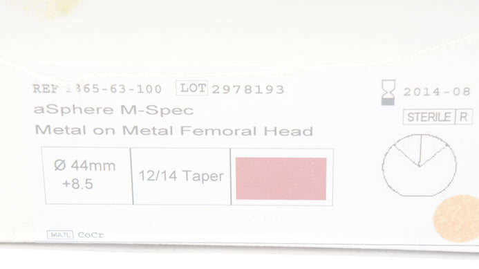 - DePuy 1365-63-100 aSphere M-Spec Femoral Head 44mm +8.5 12/14 Taper (x)