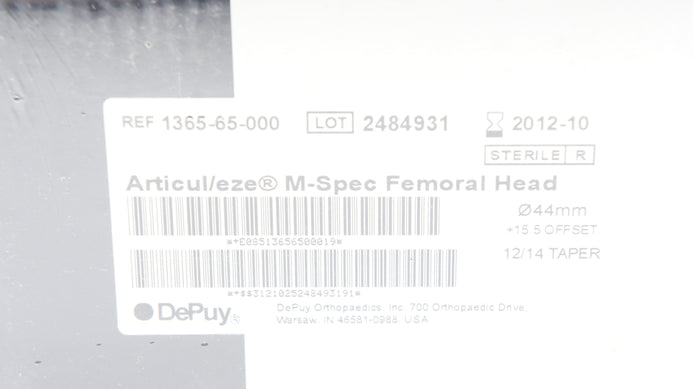 - DePuy 1365-65-000 M-Spec Femoral Head 44mm,+15.5, 12/14 Taper (x)