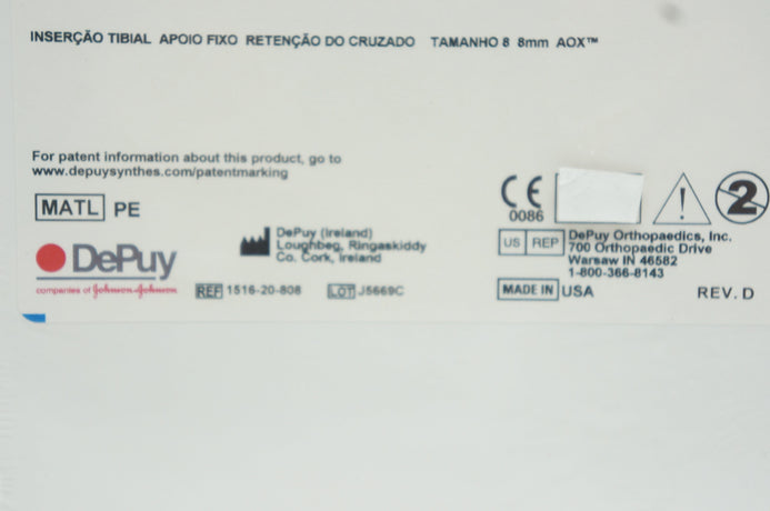 - DePuy 1516-20-808 Tibial Insert Fixed Bearing Cruciate Retaining AOX 8mm