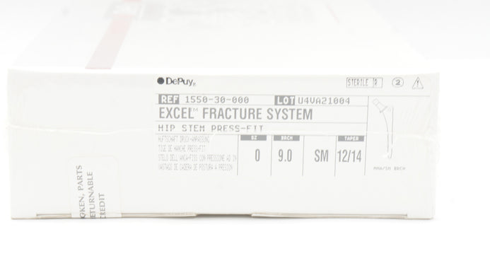 - DePuy 1550-30-000 Excel Hip Stem Press-Fit Size 0, 9.0 SM, 12/14 Taper
