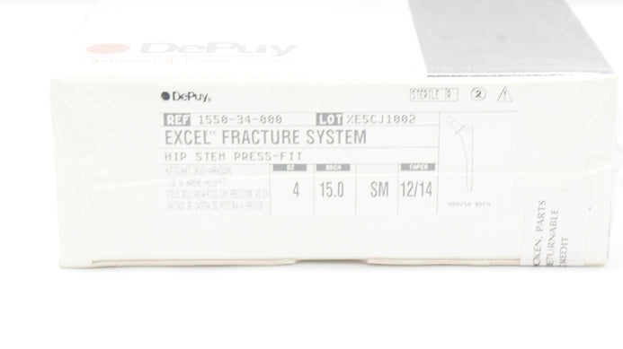 - DePuy 1550-34-000 Excel Hip Stem Press-Fit Size 4, 15.0 SM, 12/14 Taper