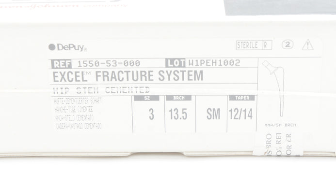 - DePuy 1550-35-000 Excel Hip Stem Cemented Size 3, 13.5 SM, 12/14 Taper