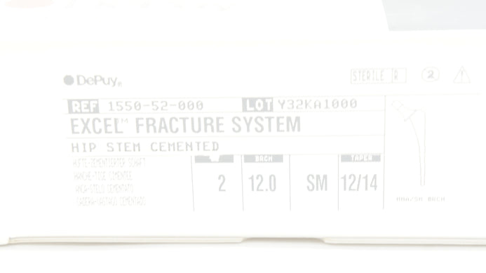 - DePuy 1550-52-000 Excel Fracture System, 2, 12.0 SM 12/14 Taper