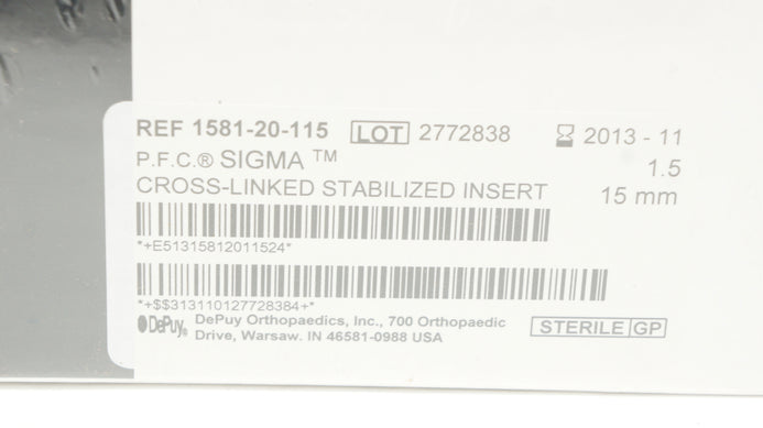- DePuy 1581-20-115 Sigma Cross-Linked Stabilized Insert Size 1.5,15mm (X)