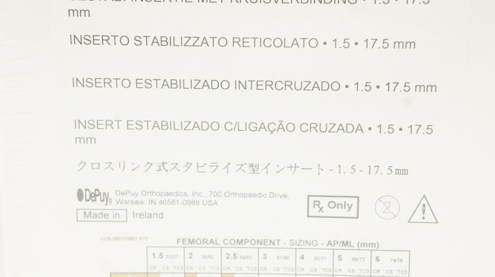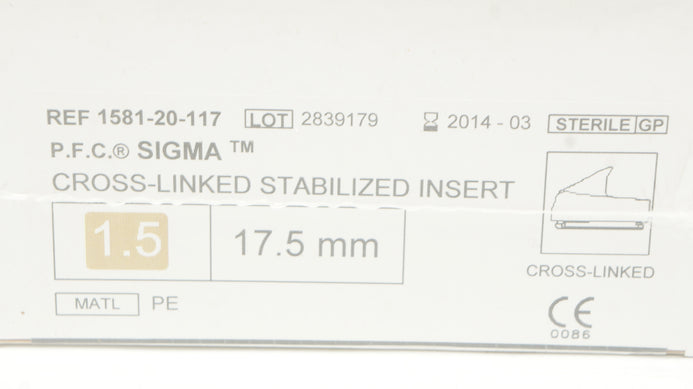 - DePuy 1581-20-117 Sigma Cross-Linked Stabilized Insert 1.5 Size, 17.5mm (x)