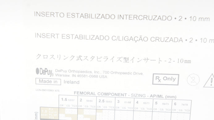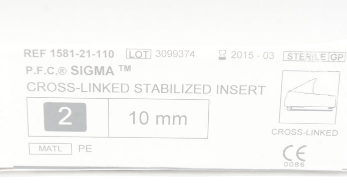 - DePuy 1581-21-110 P.F.C. Cross-Linked Stabilized Insert 2 x 10mm (x)