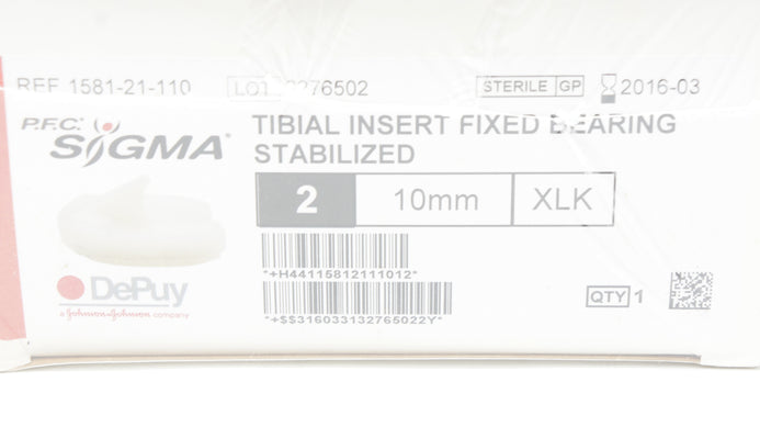 - DePuy 1581-21-110 P.F.C. Cross-Linked Stabilized Insert 2 x 10mm (x)