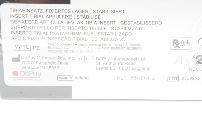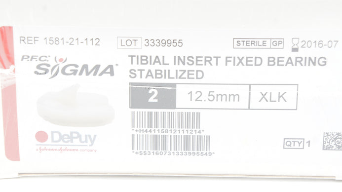 - DePuy 1581-21-112 Sigma Tibial Insert Fixed Bearing Stabilized 2 x 12.5mm (x)