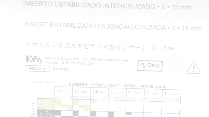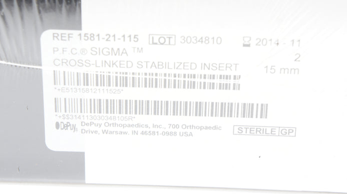 - DePuy 1581-21-115 P.F.C. SIgma Cross-Linked Stabilized Insert 2, 15mm (x)