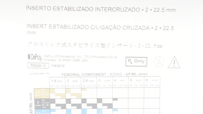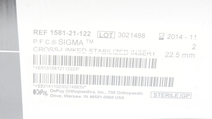 - DePuy 1581-21-122 Sigma Cross Linked Stabilized Insert 22.5mm, Size 2 (x)