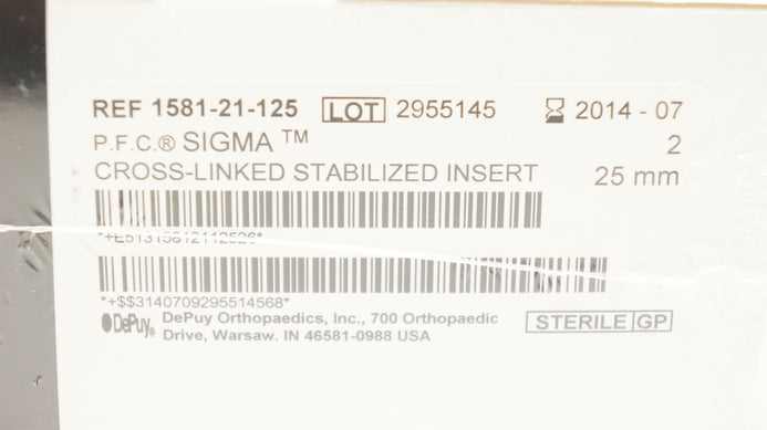 DePuy 1581-21-125 Sigma Cross Linked Stabilized Insert 25mm, Size 2 (x)