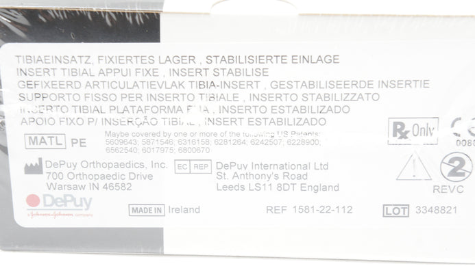 - DePuy 1581-22-112 Sigma Tibial Insert Fixe Bearing Stabilized 2.5,12.5mm XLK (x)