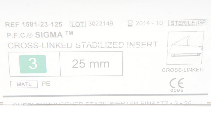 - DePuy 1581-23-125 Sigma Cross-Linked Stabilized Insert 25mm, Size 3 (x)