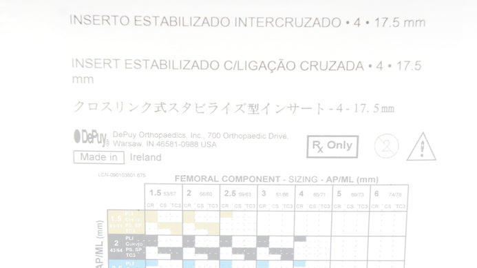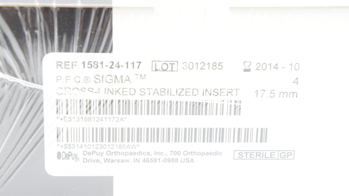 - DePuy 1581-24-117 P.F.C. Sigma Cross-Linked Stabilized Insert 4, 17.5 (x)