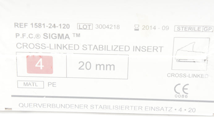 - DePuy 1581-24-120 Sigma, Cross-Linked Stabilized Insert 4, 20mm (x)