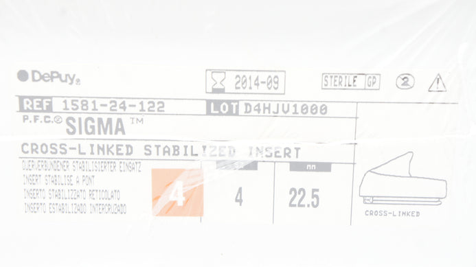 - DePuy 1581-24-122 Sigma, Cross-Linked Stabilized Insert 4 x 4 x 22.5 (x)
