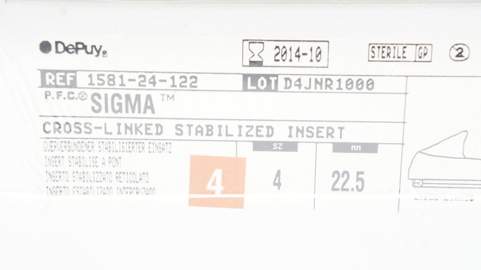 - DePuy 1581-24-122 Sigma, Cross-Linked Stabilized Insert 4 x 4 x 22.5 (x)