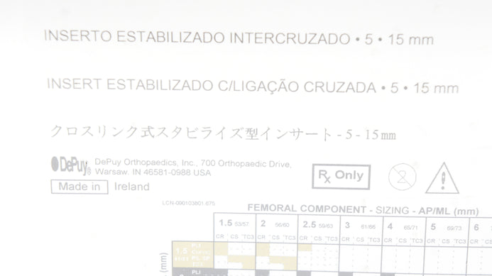 - DePuy 1581-25-115 Sigma Cross-Linked Stabilized Insert 5, 15mm (x)