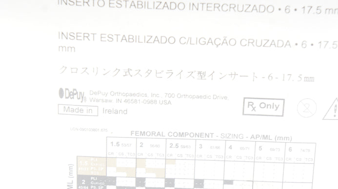 - DePuy 1581-26-117 Sigma Cross Linked Stabilized Insert 17.5mm, Size 6 (x)