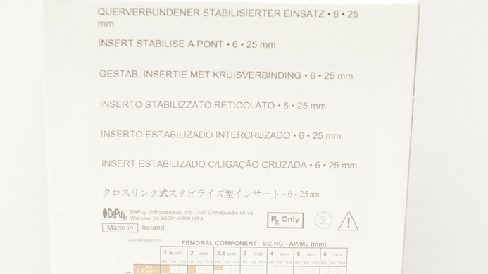 DePuy 1581-26-125 Sigma Cross Linked Stabilized Insert 25mm, Size 6 (x)