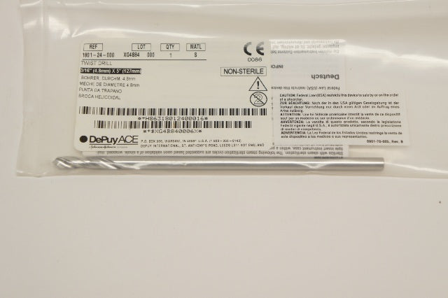 - DePuy 1801-24-000 Twist Drill 3/16in. x 5in.