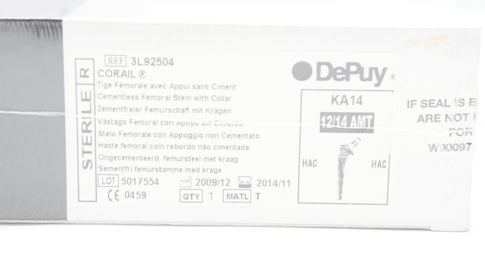 - DePuy 3L92504 Corail Cementless Femoral Stem w/Collar KA14, 12/14 AMT(x)