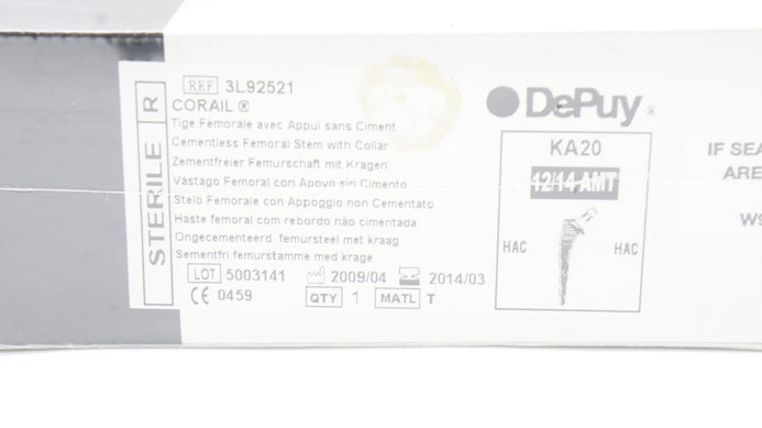 DePuy 3L92521 KA20 Corail Cementless Femoral Stem w/Collar Size 20 (x)