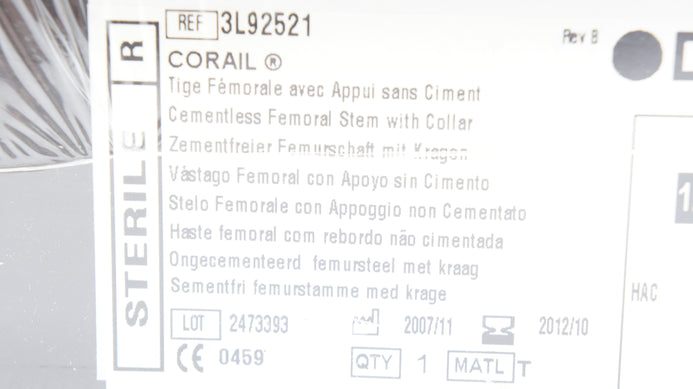 - DePuy 3L92521 KA20 Corail Cementless Femoral Stem w/Collar Size 20 (x)