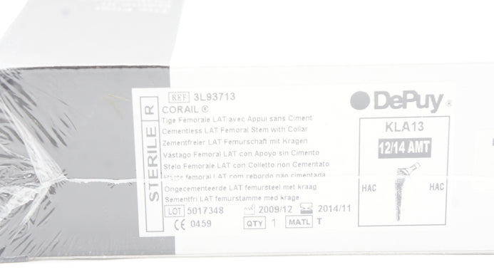 - DePuy 3L93713 Corail Cementless Femoral Stem w/Collar KLA13, 12/14 AMT(x)