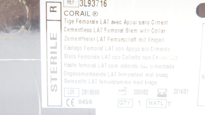 - DePuy 3L93716 CORAIL Cementless LAT Femoral Stem w/Collar, Size 16 (x)