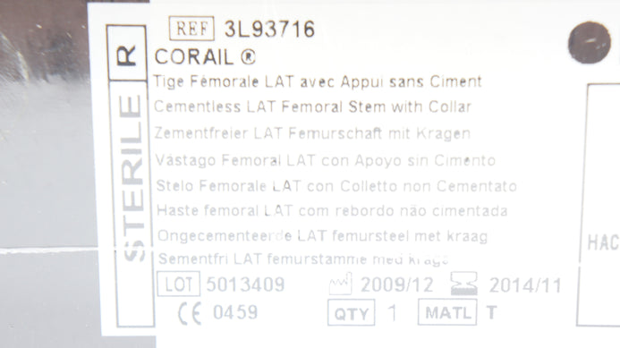 - DePuy 3L93716 CORAIL Cementless LAT Femoral Stem w/Collar, Size 16 (x)