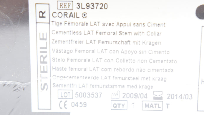 - DePuy 3L93720 CORAIL Cementless LAT Femoral Stem w/Collar, Size 20 (x)