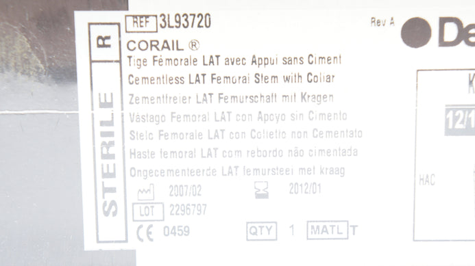- DePuy 3L93720 CORAIL Cementless LAT Femoral Stem w/Collar, Size 20 (x)