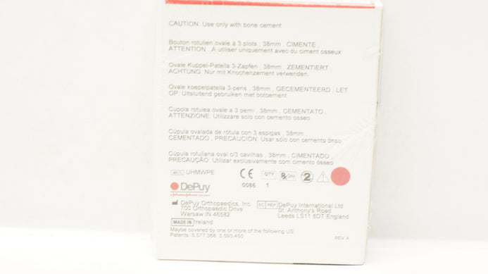 - DePuy 96-0102 SIgma Oval Dome Patella 3-PEG 38mm Cemented (x)