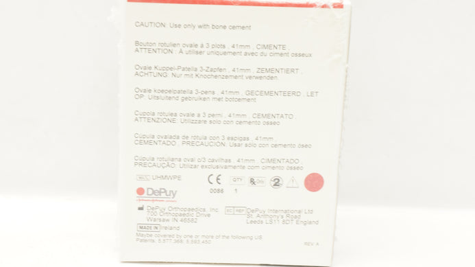 - DePuy 96-0103 SIgma Oval Dome Patella 3-PEG 41mm Cemented (x)