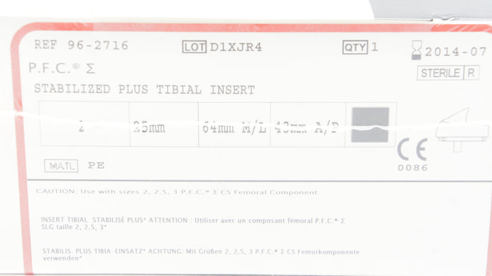 - DePuy 96-2716 Stabilized Plus Tibial Insert 2 x 25mm x 64mm x 43mm (x)